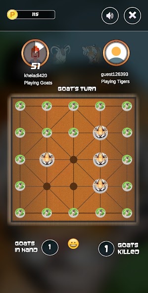 This game has One player, Two Player offline modes with options to select either goat or tiger.